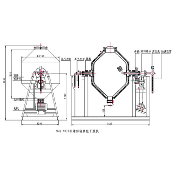SZG雙錐回轉(zhuǎn)真空干燥機為雙錐形的回轉(zhuǎn)罐體,罐內(nèi)在真空狀態(tài)下,向夾套內(nèi)通入蒸汽或熱水進行加熱,熱量通過罐體內(nèi)壁與濕物料接觸。濕物料吸熱后蒸發(fā)的水汽。通過真空泵經(jīng)真空排氣管被抽走。由于罐體內(nèi)處于真空狀態(tài),且罐體的回轉(zhuǎn)使物料不斷的上下,內(nèi)外翻動,故加快了物料的干燥速度,提高干燥效率,達到均勻干燥的目的。