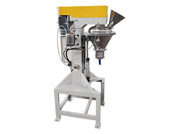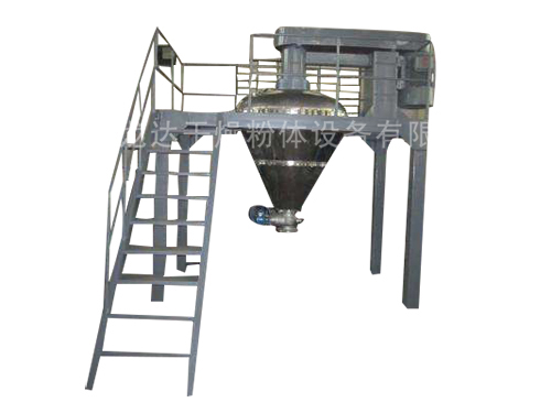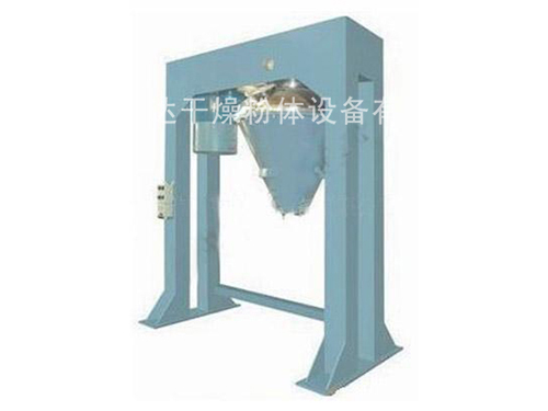 產品通過錐形混合腔頂部投入,投料范圍在30%-100%之間,設備中間有一個頂部驅動的高速轉軸,因此便去除了在產品區域的密封設計以及軸承。在軸上有緊貼內壁的槳式混合原件。通過高速旋轉的攪拌槳和錐形內倉的共同作用將產品由底部帶至混合腔的上部。當產品達到頂部的時候又重新回落到混合倉中心,如此的產品的方式形成了一種快速的宏觀混合。